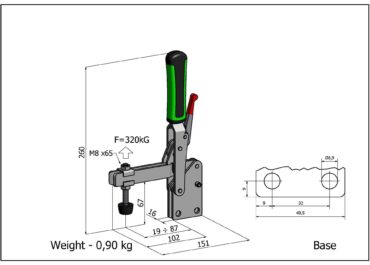 2292 - Sauterelle verticale lourde à fixation à plat