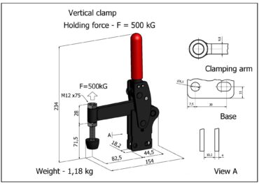 1656B - Sauterelle verticale à fixation verticale longitudinale avec vérrouillage supplèmentaire