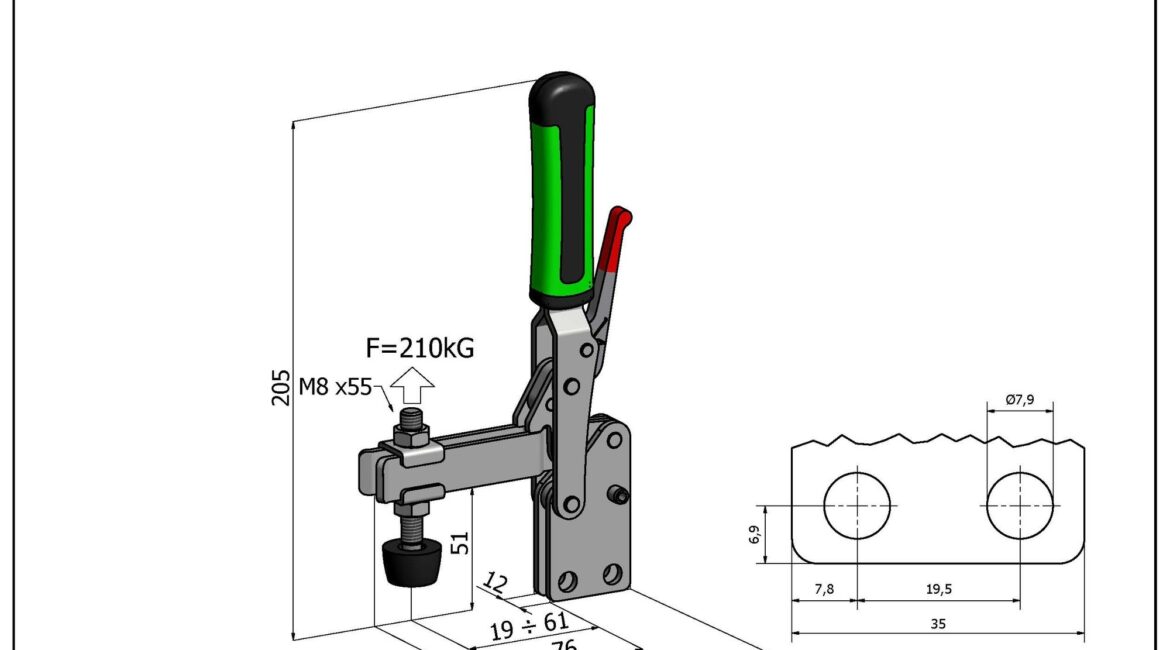 Sauterelle verticale à fixation verticale longitudinale avec vérrouillage supplèmentaire