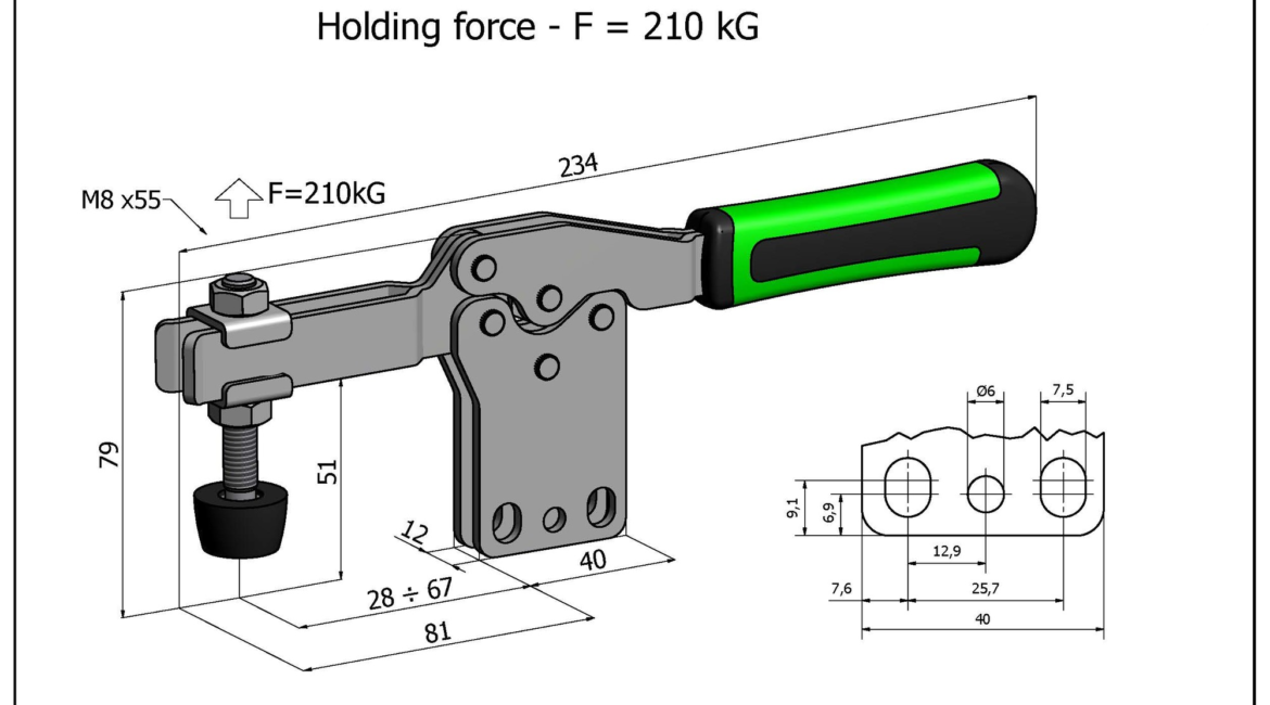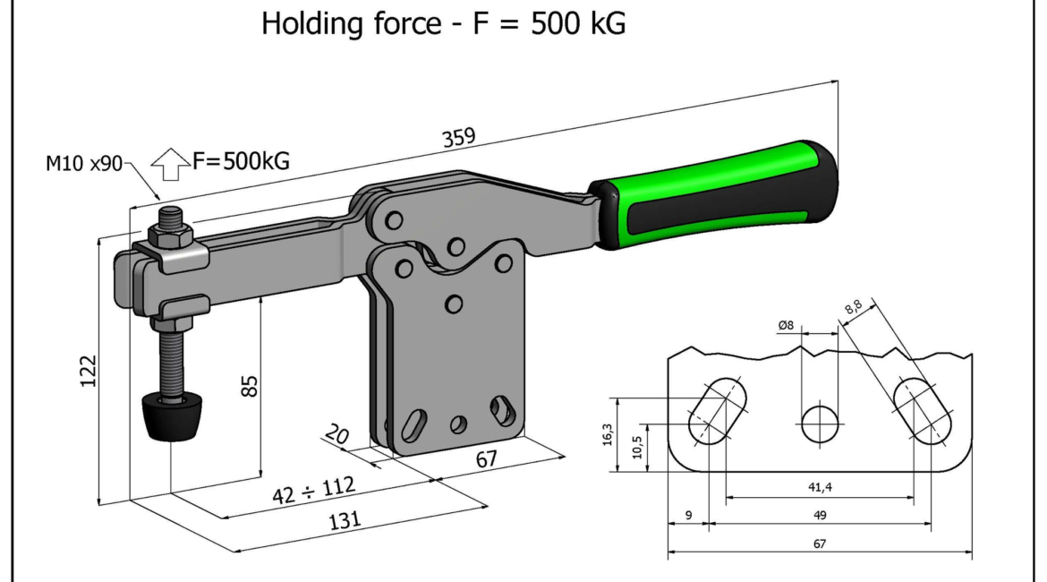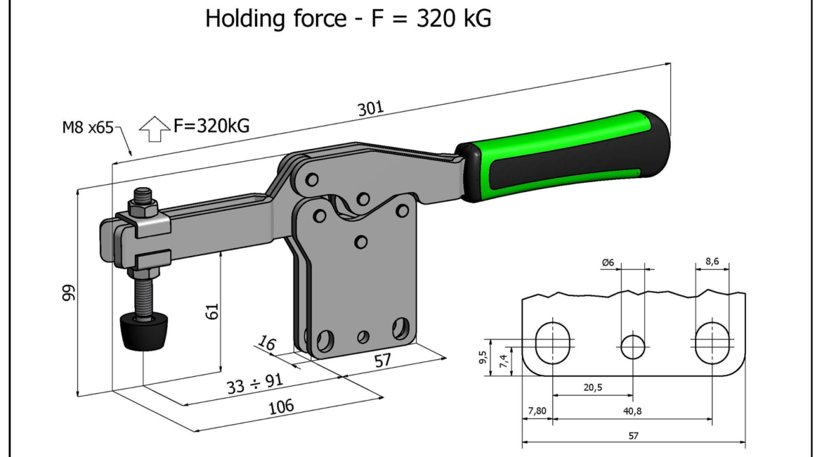 Sauterelle horizontale Ă fixation verticale longitudinale