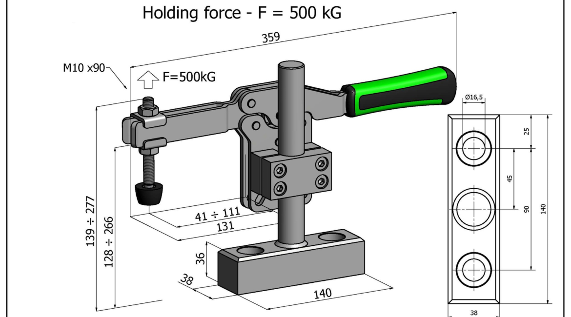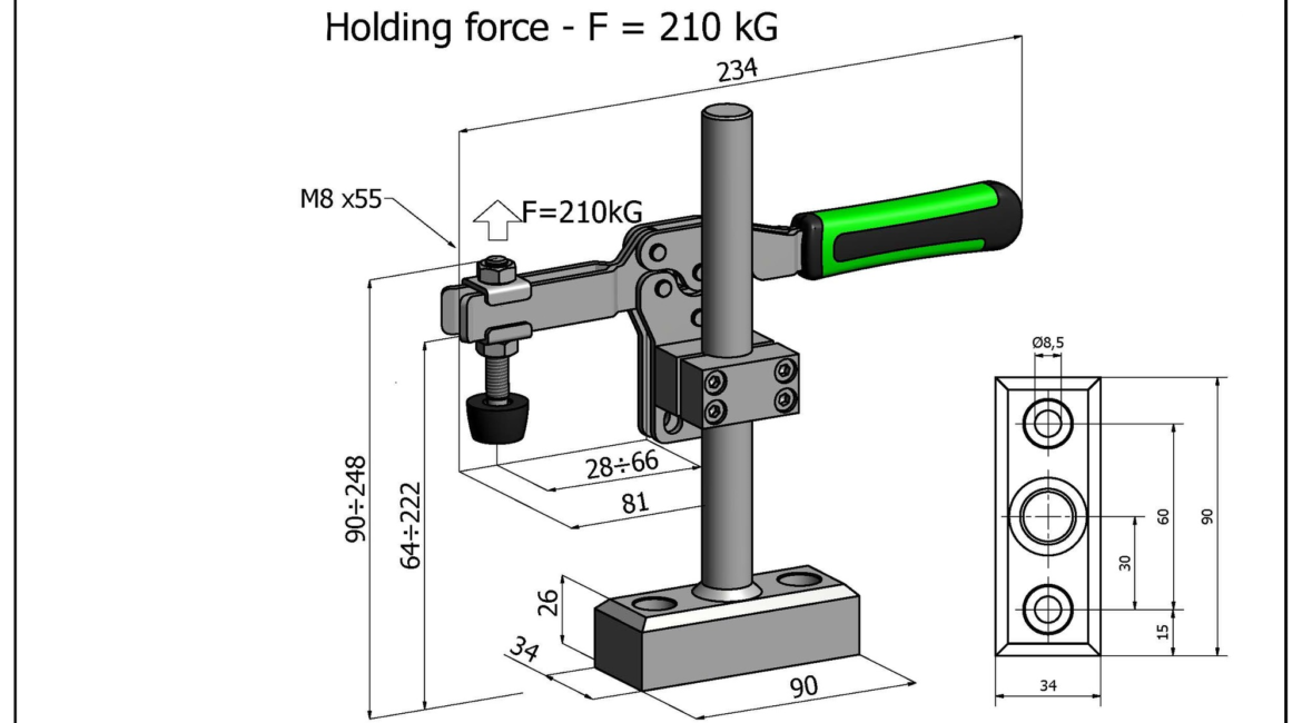 Sauterelle horizontale à support réglable en hauteur