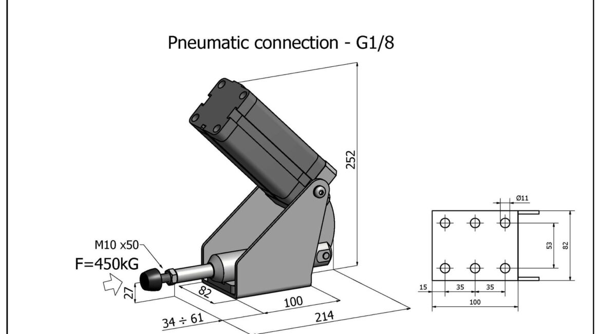 Sauterelle pneumatique Ă pousser-tirer Ă fixation Ă plat. Verin Metal-Work vertical